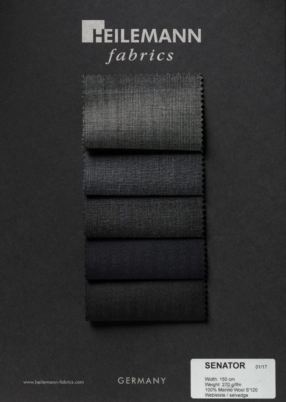 Unsere Stoffe aus der Serie „Senator“ wurden mit Garnen aus feinster Merinowolle hochwertigem Kaschmir gewebt.